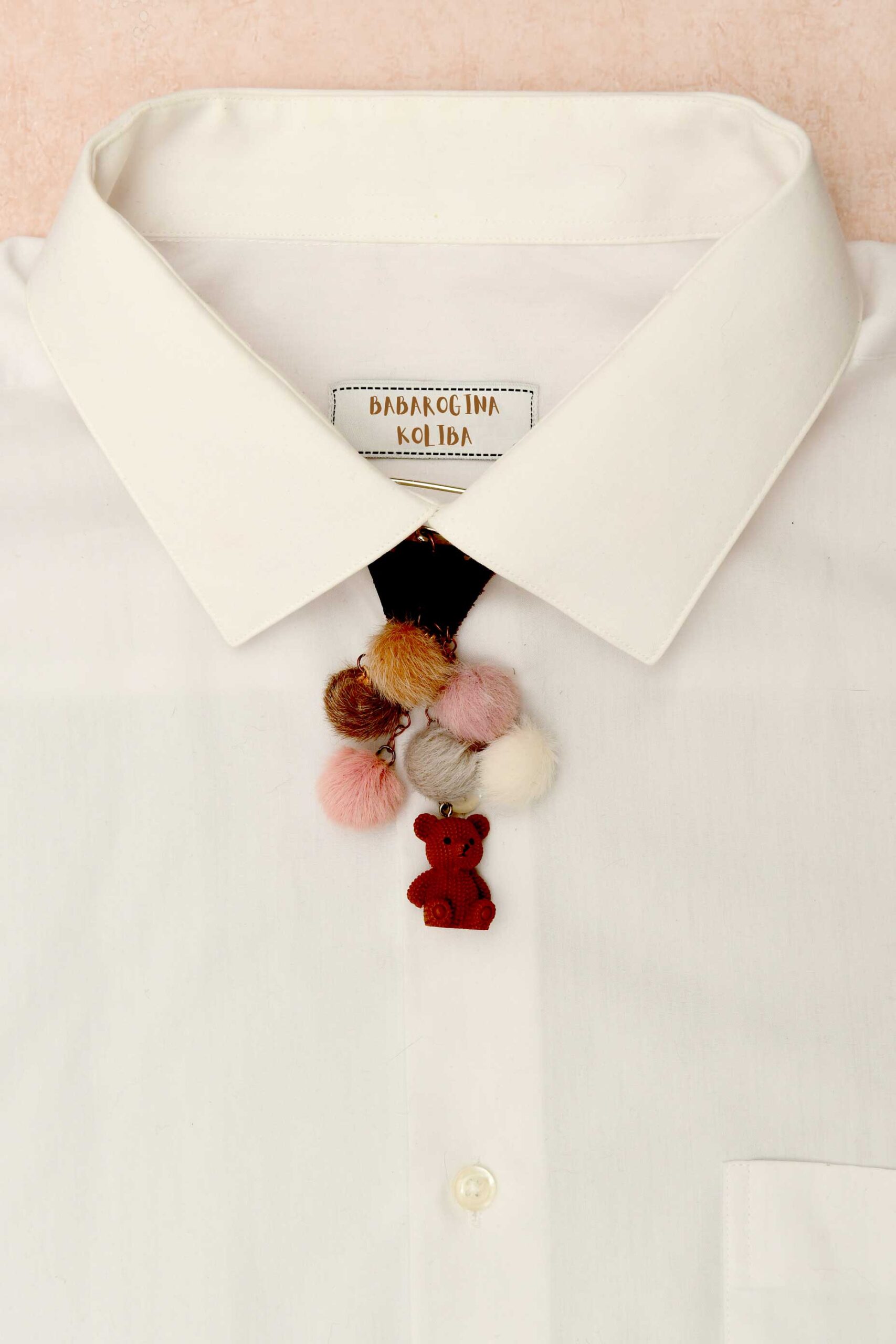 Unikatna kravata/broš sa medom je razigran i nežan komad koji odmah budi toplinu. Mekane pufnaste kuglice u pastelnim i zemljanim tonovima stvaraju teksturu i volumen, dok mali meda na dnu daje celini karakter i dozu nostalgije.