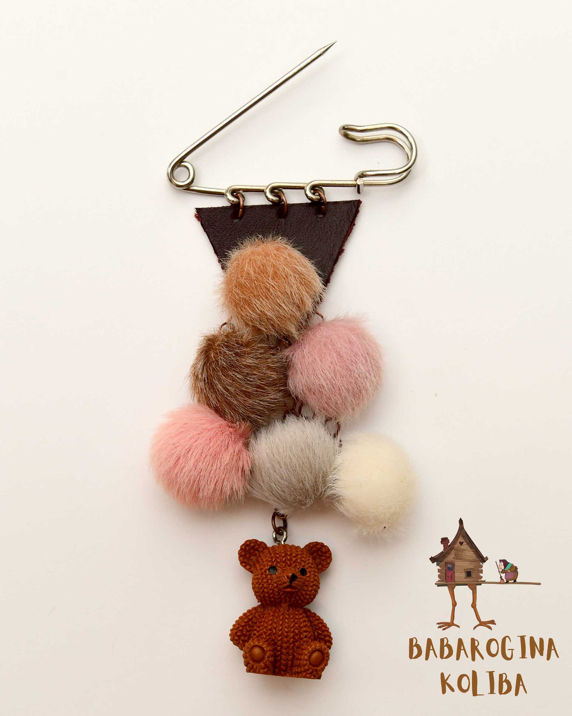 Materijal: pufnice, lačnčić, meda, koža i metalna osnova za broš