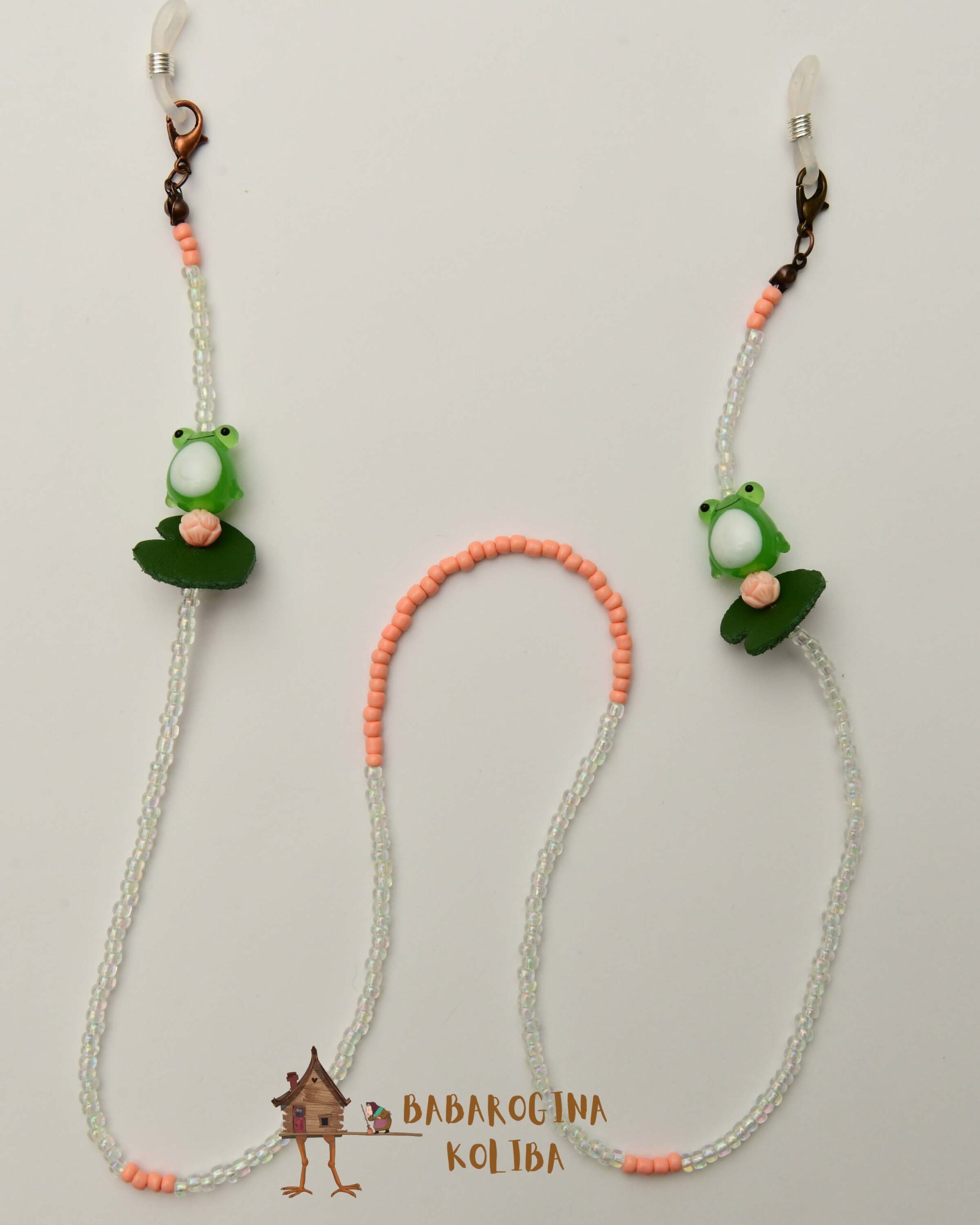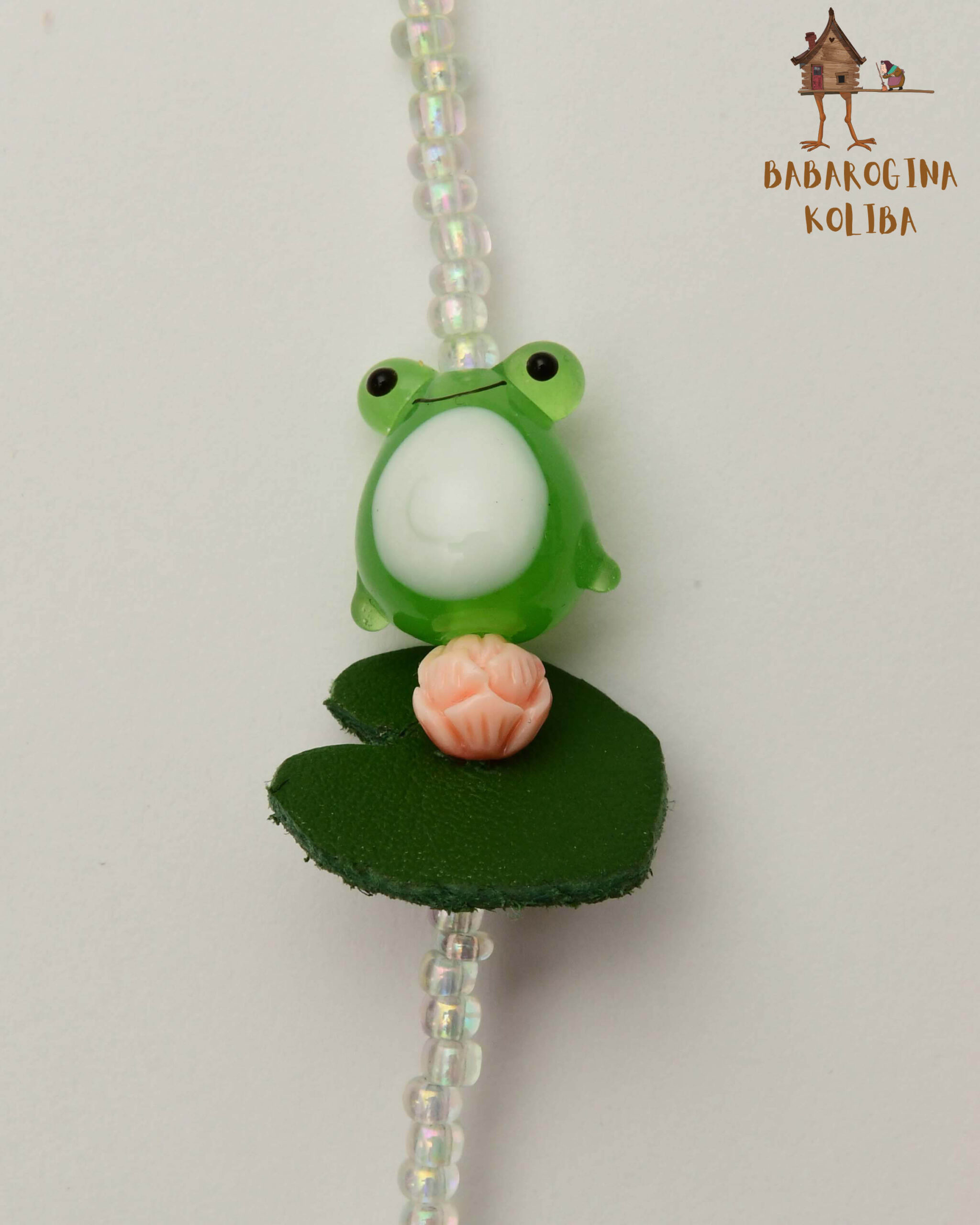 Materijal: staklene perlice i staklena žaba i kožni lokvanj